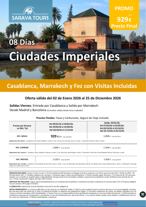 Ciudades Imperiales de Marruecos 8 días: Rak, Cmn y Fez con Visitas Incluidas hasta Diciembre 2026